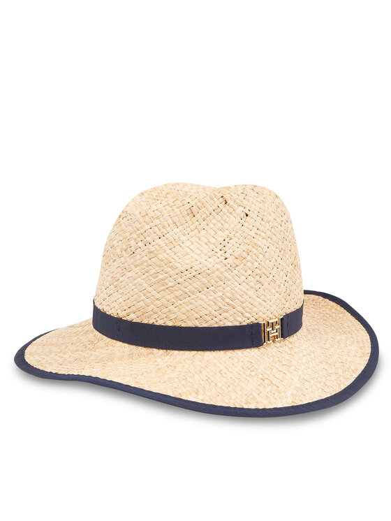 Tommy Hilfiger Cappello Beach Summer Straw Fedora Hat AW0AW16044 Écru