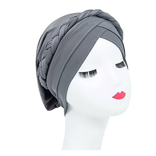 2 pz cappello turbante intrecciato treccia testa avvolgere sonno cappello foulard Beanie perdita di capelli Cap, nero e grigio., Medium