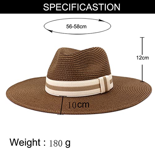 Cappello Visiera Cappello da Sole Cappello da Jazz A Tesa Larga da Uomo E da Donna Cappello di Paglia con Protezione Solare da Viaggio All'Aperto per Il Mare,Bianco,Regolabile