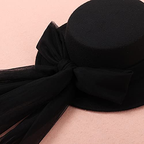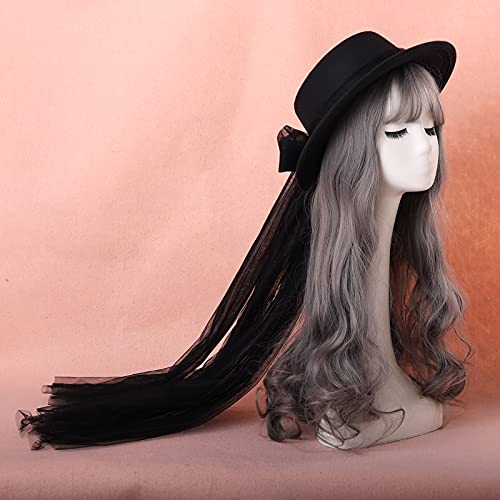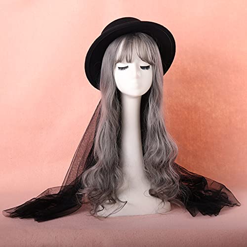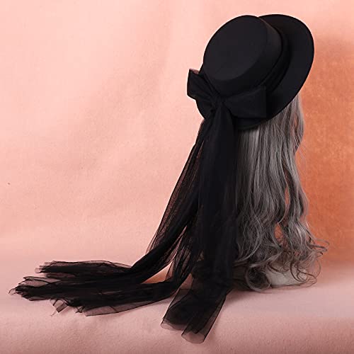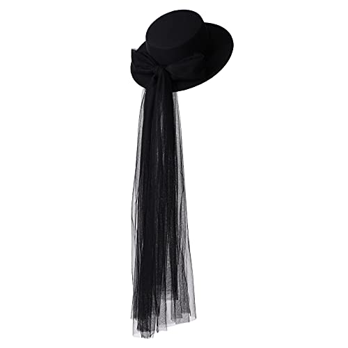 Cappello vittoriano da donna gotico cappello nero bianco velo cappelli (nero)