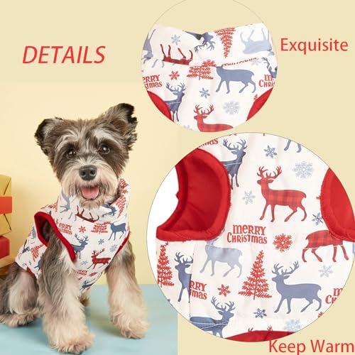 Cappottino Cane Caldo Cappotti e Giubbotti per Cane Piumino Cane Gilet Antivento per Cani con Motivo natalizio e Anello a D Retro per Cani di Piccola Taglia Media Grande (L, alce bianco)