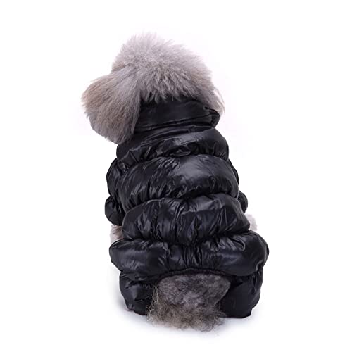 Cappotto per Cani con Cappuccio Tinta Unita Giacca Impermeabile Antivento Quattro Gambe Caldo Cane Inverno Vestiti Spessi Piumino per Animali Domestici per Cani Piccola Taglia,Nero,S
