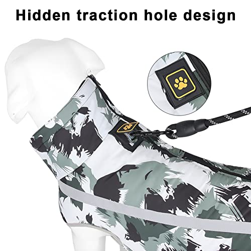 2XL Cappotto per Cani Impermeabile Caldo Inverno Giacca Cappotto Cane Sport Gilet Cane Vestiti Outfit con Imbracatura Strisce Riflettenti Medio Grande Cane Antivento Abbigliamento Vestiti Bianco Nero
