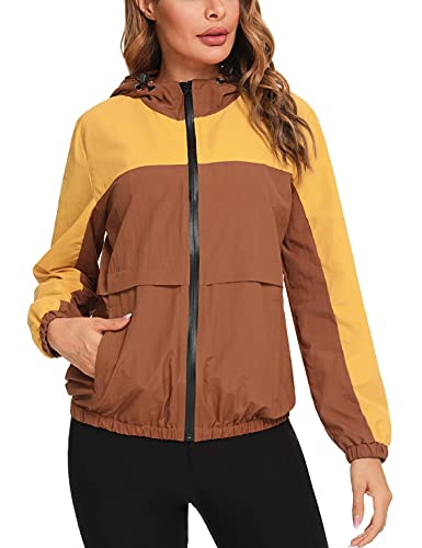 NC Cappotto Impermeabile Donna Giacca Impermeabile Antivento Antipioggia Giacche Leggera Sportiva a Vento con Cappuccio e Tasche per Corsa Campeggio Giallo L