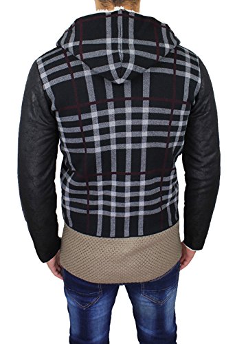 Cappotto Uomo Nero Grigio Fantasia Quadri Giacca Slim Fit Giaccone Invernale Casual Elegante con Gilet Interno (XL)