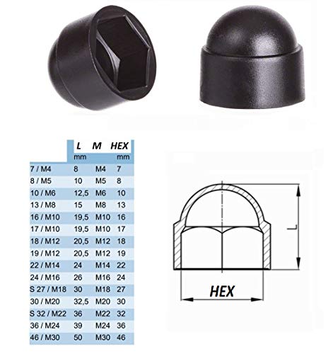 Cappuccio Dado, M6/Esagonale 10mm, Nero