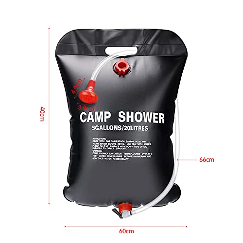 ☀ Borsa da doccia solare da campeggio: la borsa da doccia solare portatile ha una capacità d'acqua di 20 litri e una dimensione di 60 * 40 cm.Può essere collegata a un oggetto stabile sopra la testa, che soddisfa pienamente le tue esigenze di vacanza.