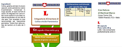 L 60 capsule. Integratore di colina (566mg) e acido pantotenico (6mg). Prodotto in Italia
