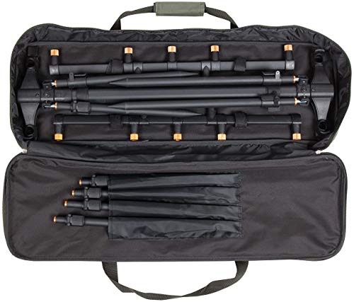 Capture Per esterni, Legendary CP-5, Rod Pod, per 3 o 4 canne da pesca, versione Pro, in alluminio, stabile, con borsa per il trasporto, ecc
