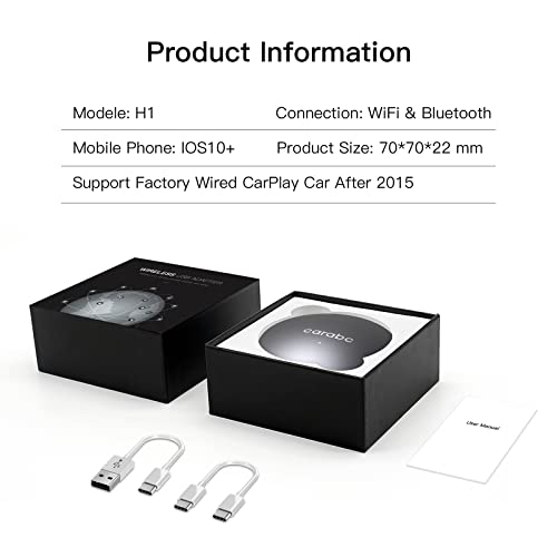 CARABC Adattatore Wireless CarPlay per OEM CarPlay, Online Update Plug & Play WiFi 5 Ghz, Apple Wireless CarPlay Dongle for Factory Wired CarPlay