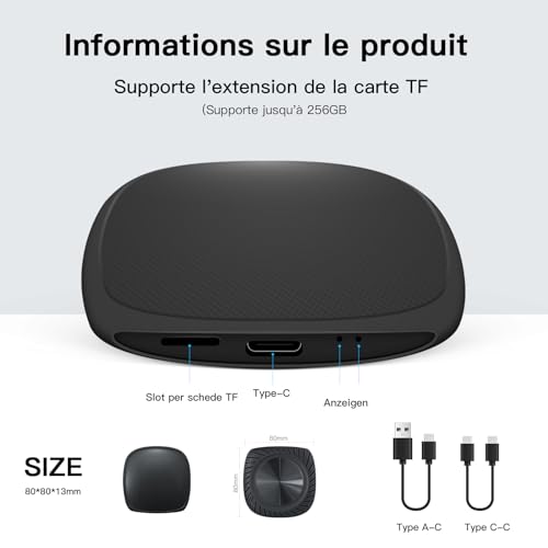 【Plug & Play senza interruzioni con connessione automatica e supporto scheda TF】- Con l'adattatore wireless Carabc Android CarPlay l'accoppiamento della vostra auto e del telefono è un gioco da ragazzi e richiede solo secondi per configurare. Goditi la comodità di mantenere tutte le funzioni di CarPlay cablato, insieme ai metodi di controllo originali dell'auto. Inoltre, l'adattatore supporta l'uso di schede TF e amplia le opzioni di archiviazione per un'esperienza senza soluzione di continuità e migliorata.