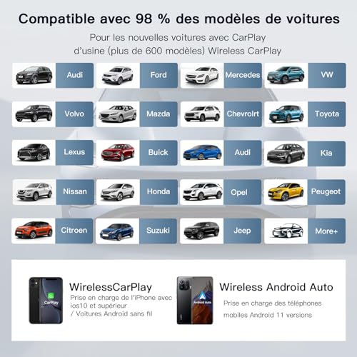 【Servizio clienti di alta qualità】 L'adattatore per auto wireless ufficiale Carabc 2023 offre una garanzia globale di un anno e un supporto tecnico a vita. Con aggiornamenti online e semplice messaggio di errore, siamo semp
