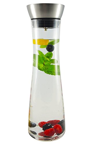 Caraffa vetro, Brocca di vetro, 1 litro con beccuccio in acciaio inox