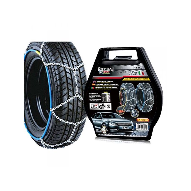 Compatibile Con Gomma 165/80R13,175/70R13,185/65R13,195/60R13, 155/80R14,165/70R14,175/65R14,185/55R14,185/60R14,195/50R14, 195/55R14,215/40R14,145/80R15,155/70R15,165/60R15,165/65R15, 175/50R15,175/55R15,185/50R15,195/45R15,195/40R16 UN KIT DI CATENE DA NEVE A ROMBO da 9mm - Gruppo 50- - Omologato ONORM V5117 - Montaggio/Smontaggio Semplice - Compatibilità: 165/80R13,175/70R13,185/65R13,195/60R13, 155/80R14,165/70R14,175/65R14,185/55R14,185/60R14,195/50R14, 195/55R14,215/40R14,145/80R15,155/70R15,165/60R15,165/65R15, 175/50R15,175/55R15,185/50R15,195/45R15,195/40R16 NOTA BENE: 1 - Nel kit sono comprese le catene da neve per 2 ruote di trazione (2 catene);