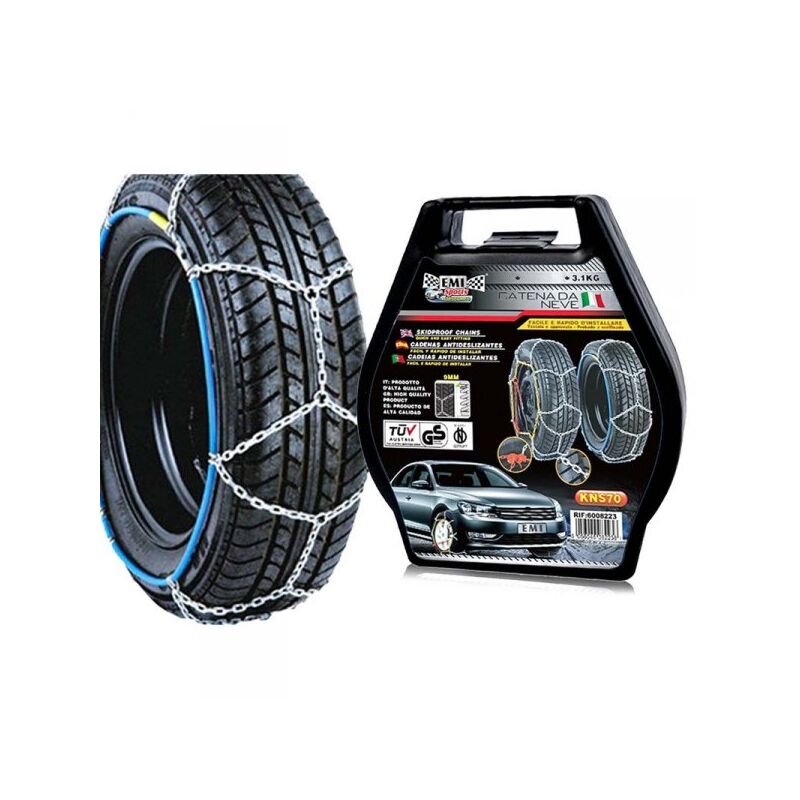 Compatibile Con Gomma 195/70R13,205/65R13, 175/75R14,185/70R14,195/65R14,205/55R14,205/60R14, 175/70R15,185/60R15,185/65R15,195/55R15,205/50R15, 175/60R16,185/55R16,195/50R16,205/45R16,215/40R16 UN KIT DI CATENE DA NEVE A ROMBO da 9mm - Gruppo 70- - Omologato ONORM V5117 - Montaggio/Smontaggio Semplice - Compatibilità: 195/70R13,205/65R13, 175/75R14,185/70R14,195/65R14,205/55R14,205/60R14, 175/70R15,185/60R15,185/65R15,195/55R15,205/50R15, 175/60R16,185/55R16,195/50R16,205/45R16,215/40R16 NOTA BENE: 1 - Nel kit sono comprese le catene da neve per 2 ruote di trazione (2 catene);