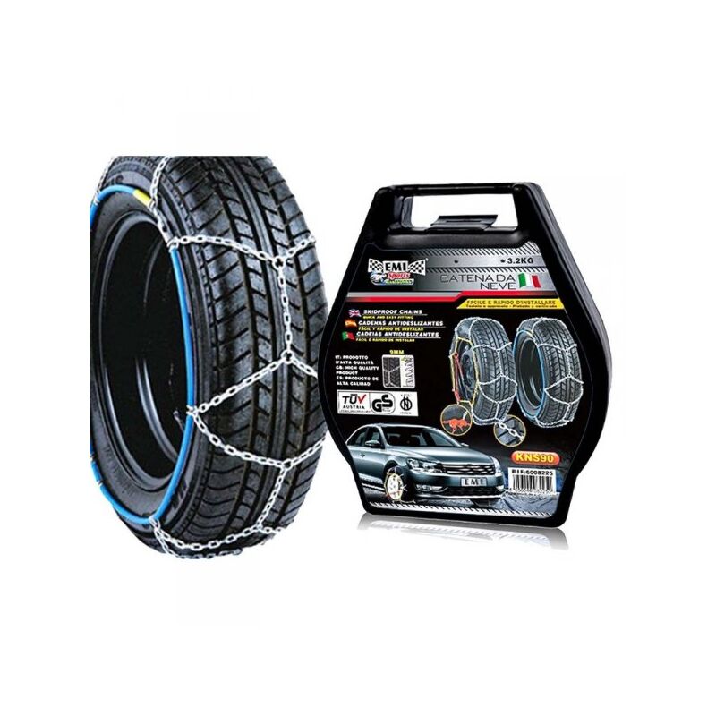 Compatibile Con Gomma 195/80R14,205/70R14,225/60R14, 180/80R15,185/80R15,195/70R15,195/75R15,205/60R15, 205/65R15,215/60R15,225/55R15,175/80R16,175/75R16, 195/65R16,205/55R16,205/60R16,215/55R16,225/50R16, 225/45R17,235/40R17,215/40R18,225/40R18 UN KIT DI CATENE DA NEVE A ROMBO da 9mm - Gruppo 90- - Omologato ONORM V5117 - Montaggio/Smontaggio Semplice - Compatibilità: 195/80R14,205/70R14,225/60R14, 180/80R15,185/80R15,195/70R15,195/75R15,205/60R15, 205/65R15,215/60R15,225/55R15,175/80R16,175/75R16, 195/65R16,205/55R16,205/60R16,215/55R16,225/50R16, 225/45R17,235/40R17,215/40R18,225/40R18 NOTA BENE: 1 - Nel kit sono comprese le catene da neve per 2 ruote di trazione (2 catene);
