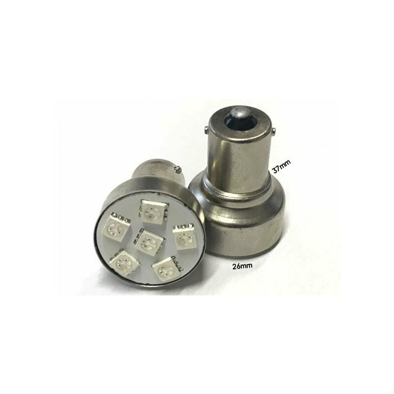 Coppia 2 Lampade Led BA15S 1156 P21W Con 6 Smd 5050 Bianco Freddo 6000K 12V 2W Attacco:BA15S 1156 Voltaggio: 12V Potenza: 2W Numero Led:6 SMD 5050 Colore:BIANCO FREDDO 6000K Misura:Lunghezza 37mm,Diametro 26mm Confezione: 2 Pezzi