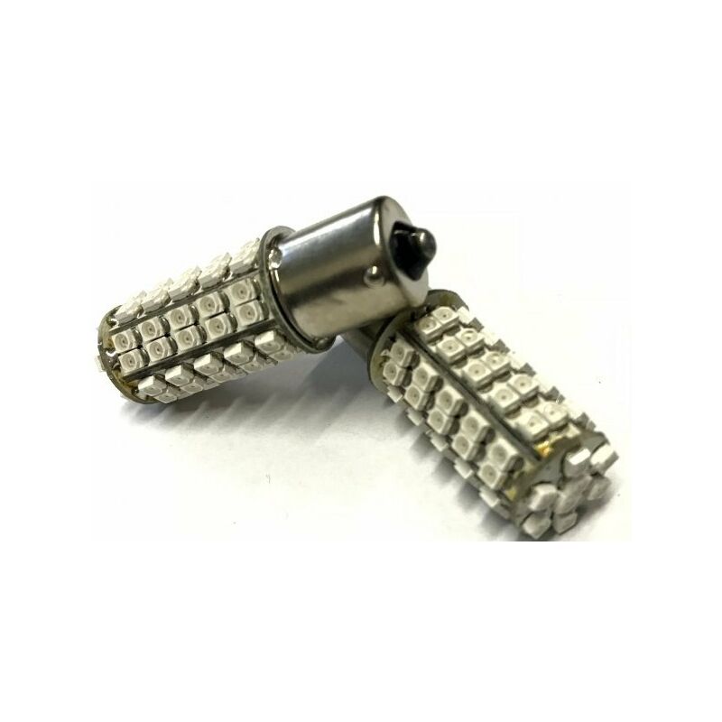 Coppia 2 Lampade Led BA15S 1156 P21W Con 68 Smd 3528 Colore Rosso 12V 2W Attacco:BA15S 1156 Voltaggio: 12V Potenza: 2W Numero Led:68 SMD 3528 Colore:ROSSO Misura:Lunghezza 54mm,Diametro 20mm Confezione: 2 Pezzi