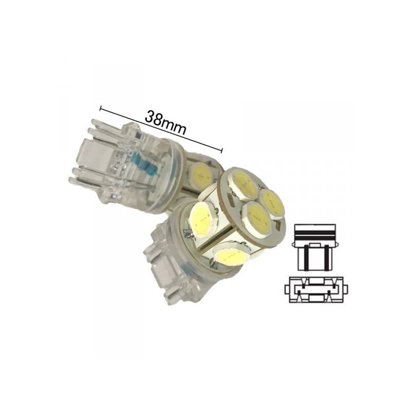 Coppia 2 Lampade Led T25 P27/7W 3157 Con 8 Smd 9080 Bianco Freddo 6000K 12V 4W Attacco:T25 P27/7W 3157 Voltaggio: 12V Potenza: 4W Numero Led:8 LED SMD 9080 Colore:Bianco Freddo 6000K Misura:Lunghezza 38mm,Diametro 24mm Confezione: 2 Pezzi