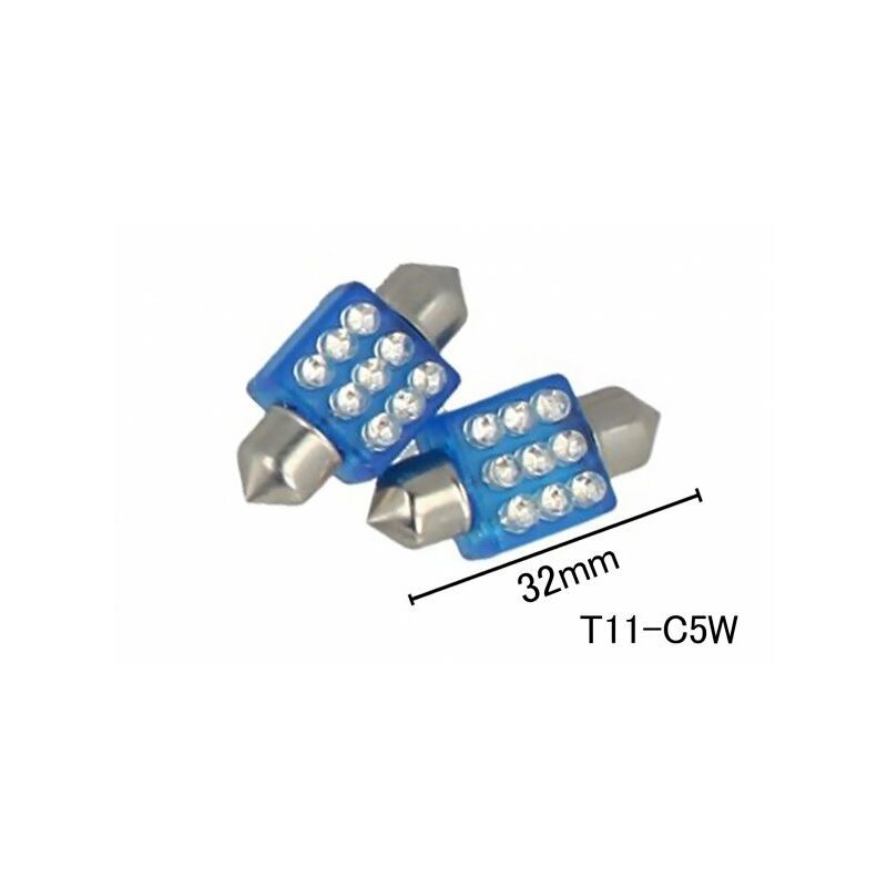 Coppia 2 Lampade Led T11 C5W Siluro 32mm Quadrato Con 9 Led F3 Colore Blue Blu 12V 0,2W Attacco:T11 C5W Voltaggio: 12V Potenza: 0,2W Numero Led:9 LED F3 Colore:BLUE Misura:Lunghezza 32mm,Larghezza 15mm,Altezza 15mm Confezione: 2 Pezzi