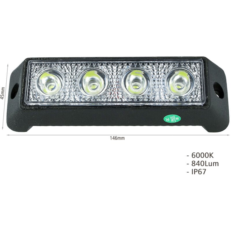 Fanale Luci Diurne A Led DRL Work Light Faro Da Lavoro 12V 24V 12W (4X3W) IP67 Bianco Funzione Lampeggiante Un Fanale Faro Da Lavoro A Led - Luci Diurne Per Auto - Antinebbia Per Fuoristrada Jeep Camion - 4 Power Led Cree Da 3W - Funziona a 9V-32V - Impermeabile IP67 - Alta Luminosità (circa 840 Lumen) - Luce Bianco Ghiaccio (circa 6000K) - INFORMAZIONI UTILI: Voltaggio: DC 9V-32V Angolo di Illuminazione: Circa 90° Numero di Led:4 Power Led Cree da 3W Temperatura Lavoro: -40℃~+80℃ Colorazione: Luce Bianco Ghiaccio Circa 6000K Potenza di Illuminazione: circa 840Lum Misura (Lunghezza X Larghezza X Spessore): 146mm X 45mm X 28mm Peso:Circa 273g Materiali: Alluminio di base Impermeabilità: IP67 Temperatura Emesso: ≤40 °C Durata di Vita:30000 ore circa ATTENZIONE: - In questa inserzione si vende solo un FARO (un singolo pezzo). Per chi ha bisogno di prenderne una coppia, deve inserire quantità 2 al momento dell'ordine.
