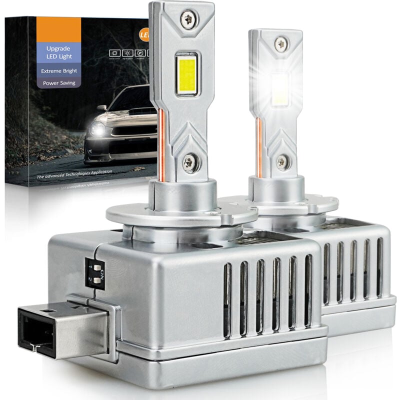 2 Pezzi di Lampade Led Headlight D1S D1R 35W 85V, Bianco Freddo 6000K, Senza Led Driver, Voltaggio Input: AC/DC90±10V Modello Con Ballast Integrato, Plug & Play, Sostituisce Direttamente Xenon Originale Senza Modifica 35W Reale Ogni Lampada, Corrente di Spunto Per Accensione Solo 16A (Invece Xenon è 34A ), Protegge La Centralina Xenon Originale,Aumenta La Durata Del Ballast Xenon Alta Luminosità Circa 6000 Lumen Ogni Faro, +220% Più Luminoso Del Xenon Originale,Durata 30000 Ore, 10 Volte Più Durevole Rispetto Lampada Xenon Compatibile Con OSRAM D1S Xenon 66140 e D1R XENARC 66154, Compatibile Con PHILIPS D1S Xenon 85410, 85415C1 e D1R 85409VIC1 Nota Bene: Per Sostituire Questa Lampada D1S D1R Led Con D1S D1R Xenon, La Ballast Xenon Originale Deve Essere Funzionante Invece Quando La Ballast Xenon Originale è Bruciata, Consigliamo di Acquistare Kit D1S Full Led Con SKU: LH55313 Marca CARALL Codice Prodotto LHS25D1S Attacco D1S D1R Plug & Play, Sostituisce direttamente D1S D1R Xenon