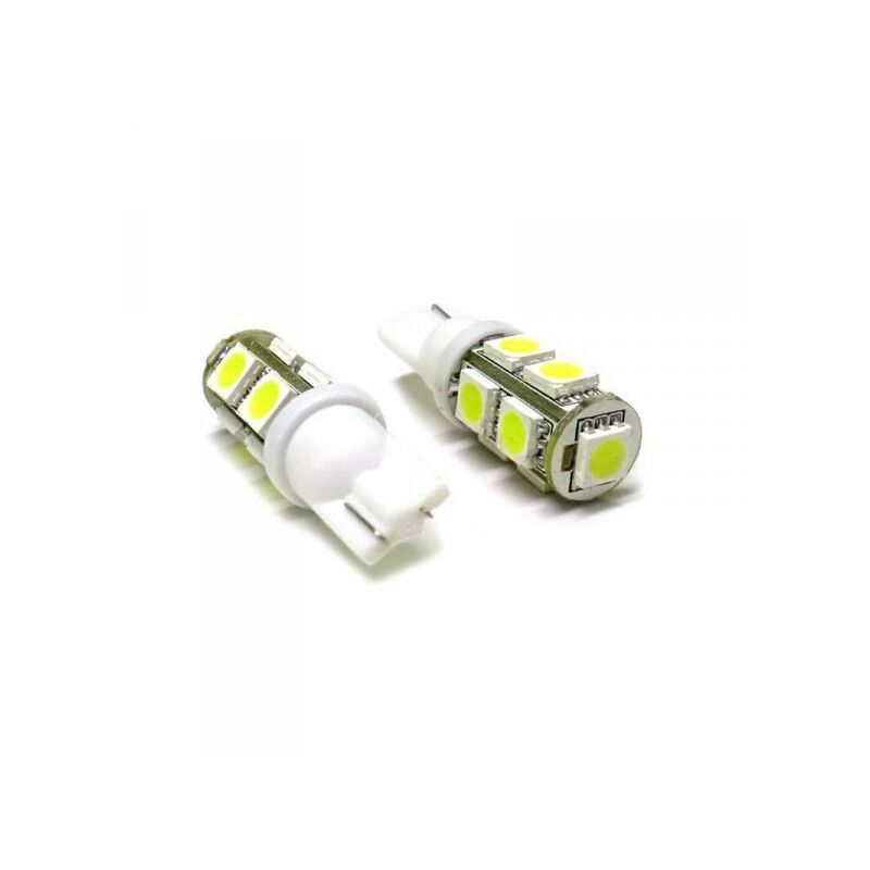Lampada Led T10 W5W 9 Smd 5050 Bianco Luci Posizione 12V "1 Coppia" T10 W5W con 9 LED SMD 5050 - SENZA RESISTENZA - colorazione Bianco Ghiaccio - INFORMAZIONI UTILI: - Voltaggio 12V - Attacco di tipo T10 W5W - Colore luce LED: Bianco Ghiaccio - Numero di LED SMD per lampadina: 9 Smd 5050 - Potenza di consumo: 2,5 W - Dimensioni: Lunghezza totale: 35mm;