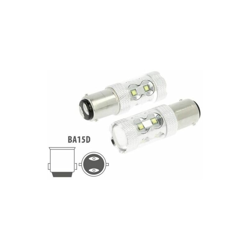 Lampada Led BA15D 50W 12V 24V Bianco Freddo 6000K Luci Per Barca 1 Coppia di Lampada Led di BA15D G18 50W con 10 LED CREE DA 5W -Super luminoso circa 750 lumens- -Due Poli si trovano sotto attacco con doppio contatti senza polarità DC 10V-30V- -Baionetta Piedi Dritti Con lente di ingrandimento nella testa- -LUCE BIANCO GHIACCIO 6000K- INFORMAZIONI UTILI: - Voltaggio:DC10V-30V (DC12V e DC24V);