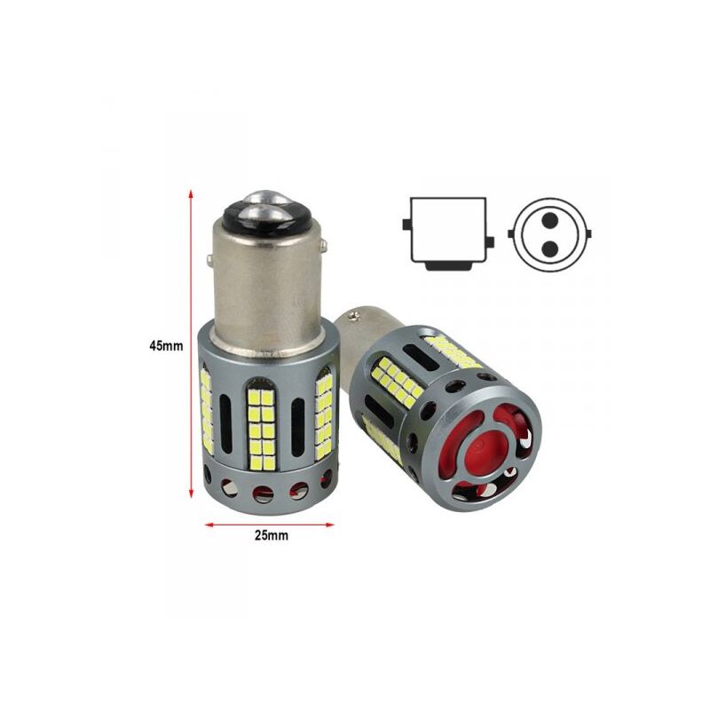 2 Pezzi di Lampade Led 100% Canbus No Errore 12V 21W/5W Effettiva Con 60 Smd 2016 Da 1W. Attacco BAY15D 1157 P21/5W Doppio Filamento, Colore Bianco 6000K, Super luminoso Circa 1200 Lumens/300 Lumens Ogni Lampada. Con Ventola Di Raffredamento In Testa, Sensore Di Temperatura Integrata, Senza Polarità, Facile Da Installare. Diametro Solo 20mm, Lunghezza Totale Compreso Base 45mm, Illuminazione 360 Gradi. Ideale Per Sostituzione Luci di Posizione e Stop Posteriore Originale Con Lampada Led Senza Necessità Di Resistenza, Compatibile Con Peugeot RCZ Per Luci Diurne. Marca CARALL Serie Commerciale S9 Codice Prodotto LS90S9 Attacco BAY15D 1157 P21/5W Doppio Filamenti Voltaggio DC10V-18V Potenza Nominale 60W (60 SMD 2016 da 1W) Potenza Effettiva 21W(Assorbe 1,7A a DC12V ) e 5W (Assorbi 0.4A a DC12V) Luminosità 1200/300 Lumen Colore Bianco 6000K Polarità Si, Negativo A Lato, Positivo Su 2 Punti Canbus SI, 100% Canbus Dimensione Diametro Solo 20mm,Lunghezza Totale Compreso Base 49mm Dissipatore