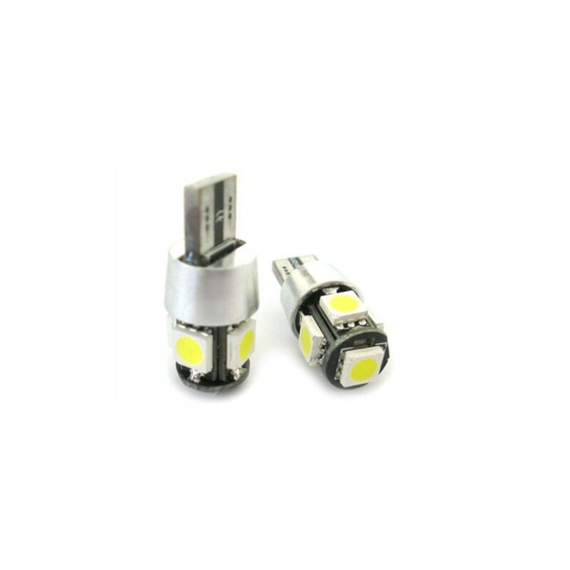 Lampada Led Canbus T10 W5W Luci di Posizione 12V 5 Smd Bianco No Errore New Con Resistenza "1 COPPIA" di T10 W5W 5 LED SMD 5050 con RESISTENZA - NO ERRORE colorazione circa 6000K (Bianco Ghiaccio) -Modello Nuovo con Anello di ferro- -Dissipatore inclusa, Durano di più- INFORMAZIONI UTILI: - Voltaggio 12V - Attacco di tipo T10 W5W - Colore luce LED: Bianco - Numero di LED SMD per lampadina: 5 SMD 5050 (1 frontale + 4 sui lati) - Potenza di consumo: 5 W - Misura: Diametro 11mm, Lunghezza totale 28mm, Lunghezza Bulb 20mm;