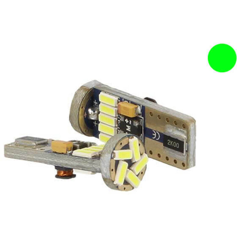 1 COPPIA di T10 W5W 15 LED SMD 4014 con RESISTENZA - NO ERRORE CANBUS,No Polarità Facile da Installare- -T10 Canbus Colore Verde- -0,18A a 12V DC 2,3W Consumo Effettivo- -Super Luminoso- "1 COPPIA" di T10 W5W 15 LED SMD 4014 con RESISTENZA - NO ERRORE CANBUS, No Polarità Facile da Installare- -T10 Canbus Colore Verde- -0,18A a 12V DC 2,3W Consumo Effettivo- -Super Luminoso- INFORMAZIONI UTILI: - Voltaggio: DC 12V - Attacco di tipo: T10 W5W - Colore luce LED:Verde - Numero di LED SMD per lampadina: 15 smd 4014 - Potenza di consumo: 2,3W Effettivo - Dati misurati da laboratorio:Consuma 0,18A a DC 12V continua. - Misura: Diametro 9mm, Lunghezza 24mm, Larghezza 9mm, Spessore 2mm - Temperatura Massima:< 60 °C - Confezione da 2 lampadine Nota bene: - conusma 0,18A a DC 12V, cioè 2,3W Effettiva,togliere errore di computer di bordo per maggiore parte di veicoli prodotto prima di 2008. AVVISIAMO CHE: una volta acquistate e montate, se la segnalazione di errore sul computer di bordo dovesse
