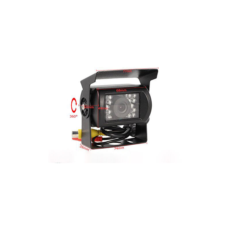 Telecamera Retromarcia Orientabile Infrarossa Notturna 12V 24V Camion Furgone Lungo Camper Tir Cavo RCA Una TELECAMERA per la RETROMARCIA -Con Cavo RCA IMPERMEABILE IP67 - -Orientabile Visione Notturno Con 18 Led- -12V 24V Per Camper Furgone Camion Tir- INFORMAZIONI UTILI: Alimentazione: DC 9V-35V (DC12 e DC24V) Sensore immagine: 1/3 SONY CCD colori Sistema televisivo: PAL/NTSC S/N Ratio: 48dB Risoluzione: 650 TV lines Pixel effettivi:720X576 pixels/PAL,720X480 pixels/NTSC Angolo visivo orizzontale: 3.6mm/92° e 2.8mm/120° Impermeabile: SI, IP67 Visione notturna: SI, con 18 Led Esposizione: Automatica Video output: RCA Dimensione: 74mm X 44mm X 54mm Visibilità al buio: 5 metri Visibilità alla luce: 15 meri Temperatura supportata: -20°C/60°C Materiali: Carcassa in metallo Peso:390 grammi Kit compreso: 1 telecamera + 1 cavo RCA da 5 metri + 1 cavo alimentazione Nota Bene: Monitor Compatibili che abbiamo a disposizione: KR3535 (Monitor 3,5 Con Interruttore On/Off) KR4343 (Monitor 4,3
