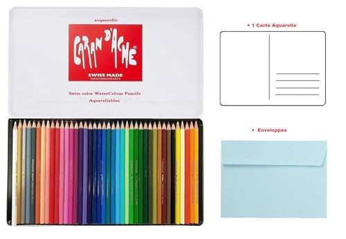 Caran d'Ache Matite colorate acquerellabili in scatola in meta, 40 pezzi. Selezione Classic e 1 carta acquerello