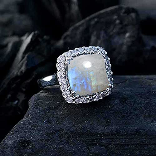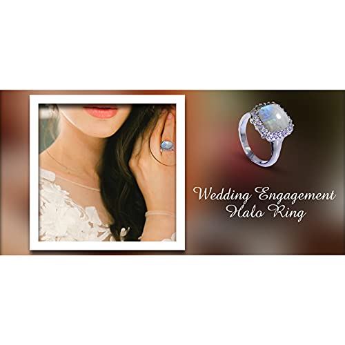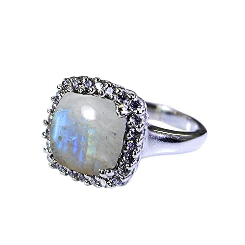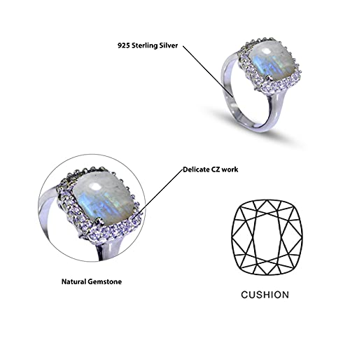 CaratYogi 925 Sterling Argento Alone Anelli di Fidanzamento Chakra guarigione Birthstone Gioielli Moda Gioielli Arcobaleno Moonstone Gemma Regalo Regalo per Le Donne, Moglie, Fidanzata Taglia 52