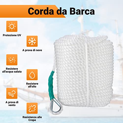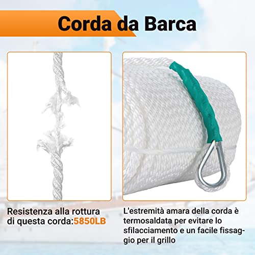 【Corda di Sicurezza Multifunzionale】Perfetta per l'ormeggio di una barca, linea di ancoraggio, fune da trekking, cima di traino, fune di emergenza, fune antincendio, ancoraggi del molo, attracco da barca a barca, fune di sopravvivenza
