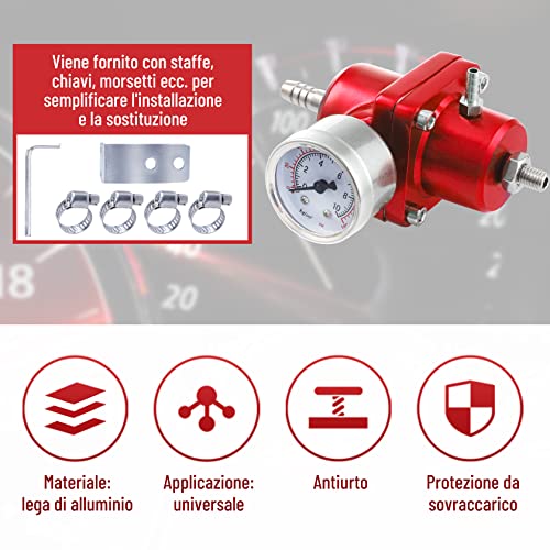 MATERIALE DI ALTA QUALITÀ: il regolatore di pressione del carburante è realizzato in materiale in lega di alluminio di alta qualità, che è sicuro, affidabile, resistente e durevole. Non è facile essere danneggiato, ha prestazioni stabili e lunga durata