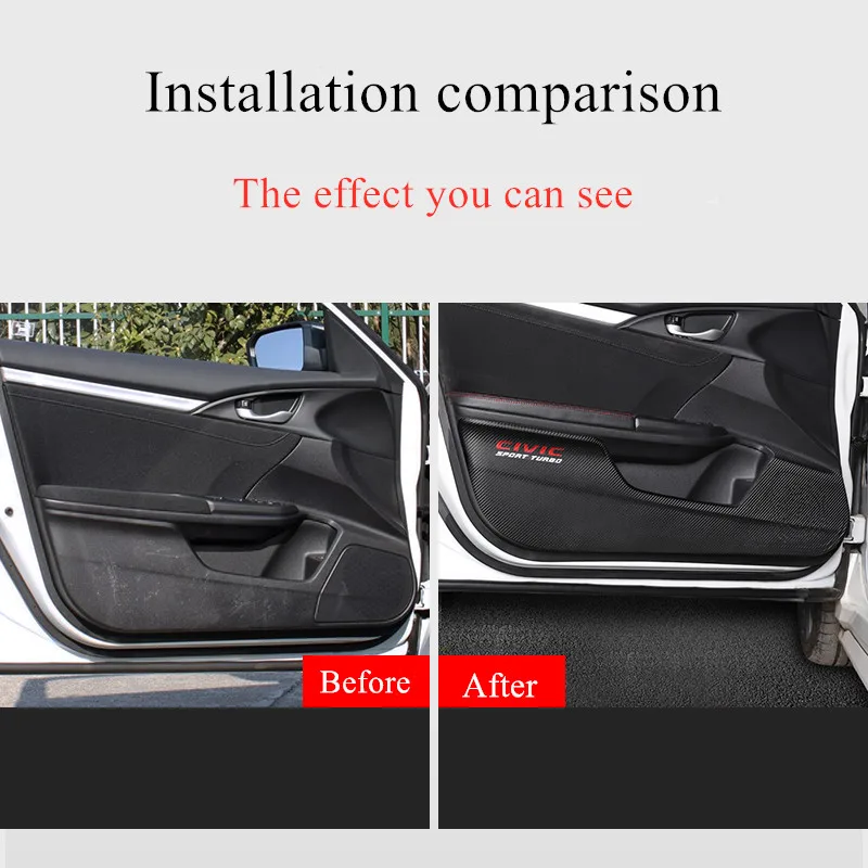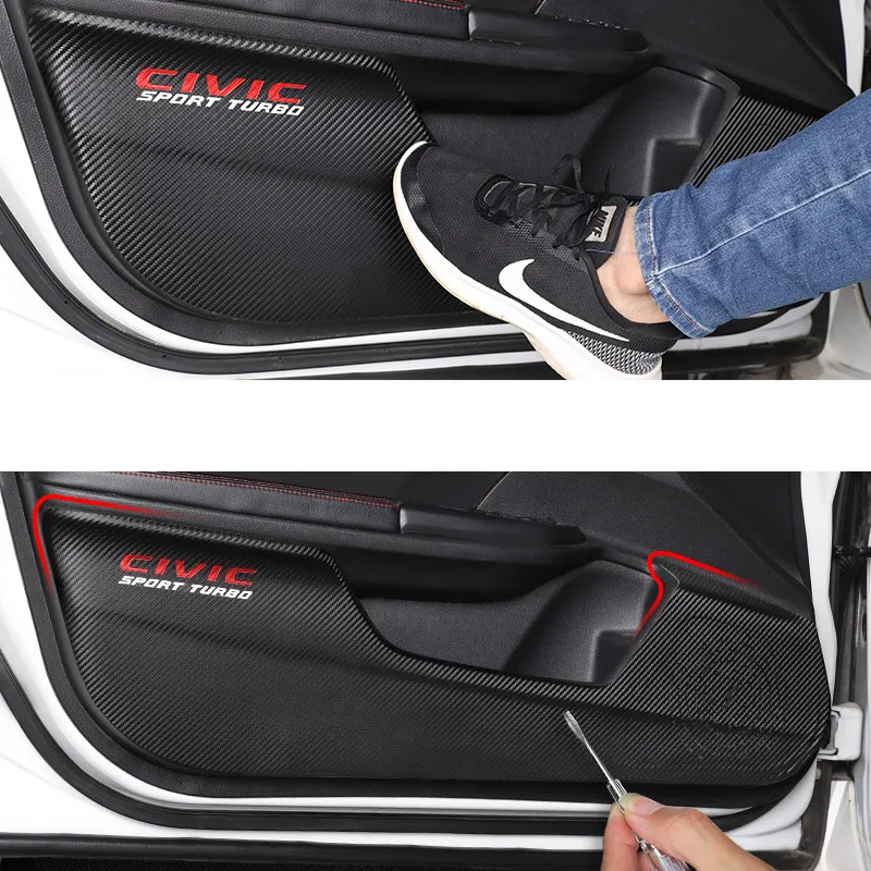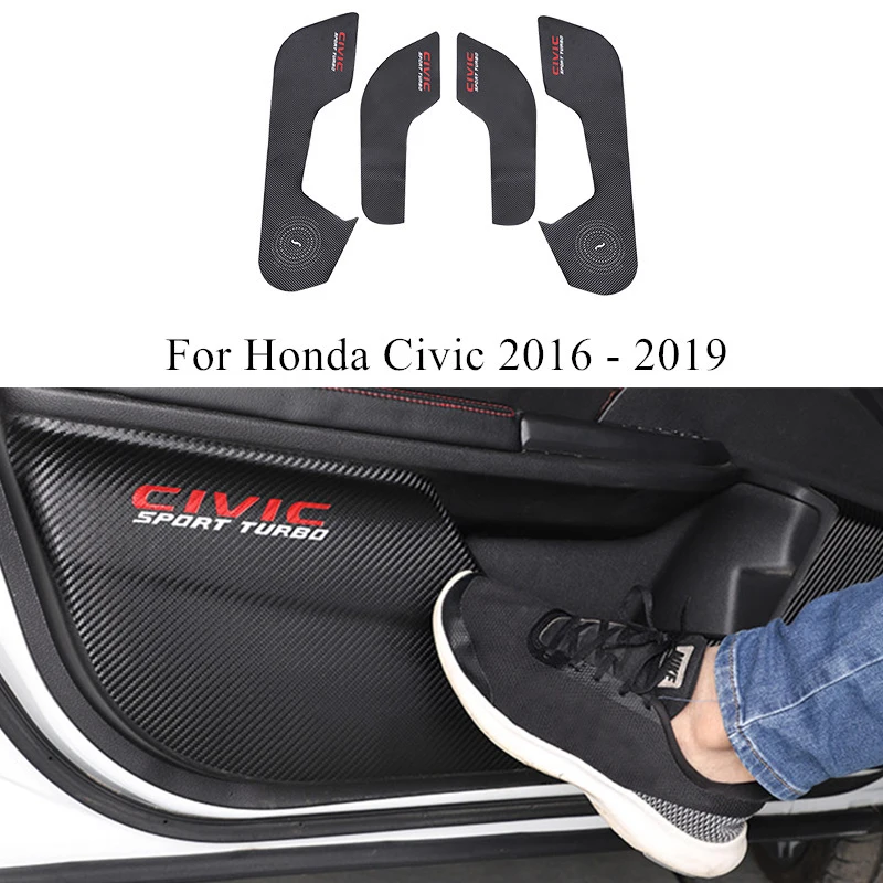 4 pcs Carbon Fiber Car Door Scratch-resistant Kick Mat Anti-dirty Pad Stickers For Honda Civic 2016 2017 2018 2019 Accessories