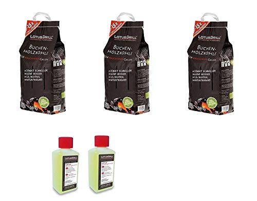 Charcoal Kit Beech 3 x 2,5 kg + 2 confezioni di Gell per il potere originale Lotus Grill