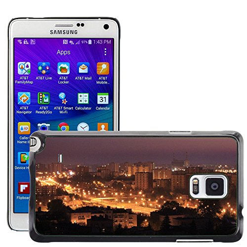 Carcasa Funda Prima Delgada SLIM Casa Case Bandera Cover Shell para // M00170673 Lublino Panorama City Città Alla Notte // Samsung Galaxy Note 4 IV