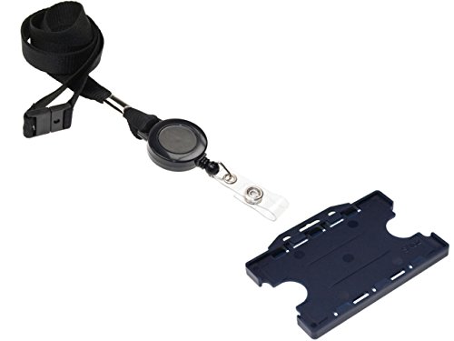 ID Card IT - Laccetto con porta-badge/cartellini a 2 lati, con bobina retrattile, colore: Nero 2 nero