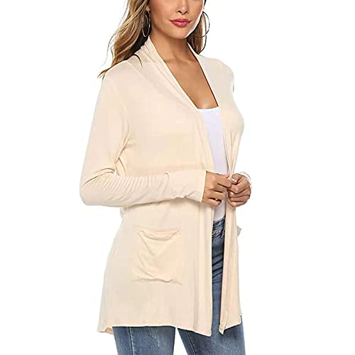 Cardigan Donna Lungo Leggero Cardigan Donna Autunno Cardigan Donna Cotone Trasparente Manica Lunga Cardigan Donna Casuale Primavera Cappotto Donna Elegante Senza Chiusura S-XXL (Beige, S)