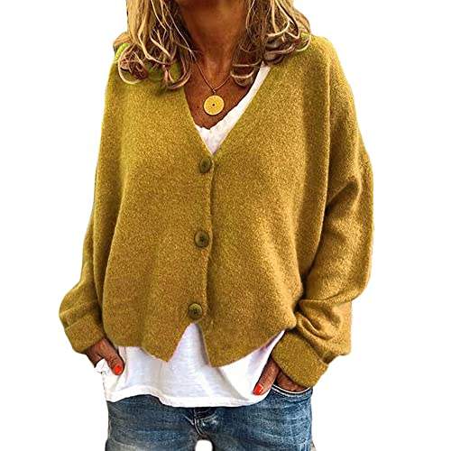 Cardigan da Donna con Scollo A V A Maniche Lunghe, Cardigan da Donna con Bottone, Cardigan in Maglia Tinta Unita Felpa Casual Elegante Moda Outwear,Giallo,S
