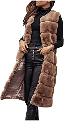 Cardigan Invernale in Pelliccia Sintetica Caldo da Donna Elegante Gilet Trapuntato Gilet in Pelliccia Sintetica Giacca Senza Maniche Gilet in Pelliccia Sintetica Cappotto in Pelliccia (Khaki,S)