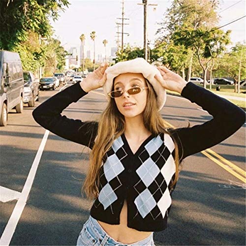 Cardigan Maglione Donna Autunnale Invernale a Maniche Lunghe con Bottoni Giubbotto Gilet Lavorato a Maglia Caldo Casual Moda (Rombo-Blu, M)