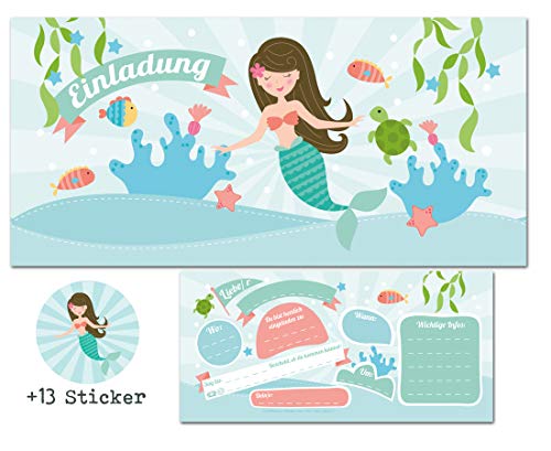 CardWheels 12 biglietti d'invito a forma di sirenetta per compleanno bambini + 13 adesivi gratis - bambina/festa pensierino inviti di compleanno compleanno compleanno bambini