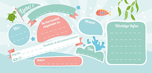 12 biglietti di invito per piccole sirenette per compleanno bambini, festa di notte o altre feste (DIN A6 lungo 9,8 x 21 cm)