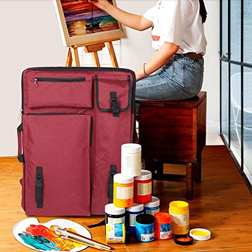 Caredy Borsa per Pittura su Tela dell'artista, Borsa da Tavolo da Disegno Grande Impermeabile Multi-Funzionale Impermeabile per Il Trasporto 4K con Maniglia(Rosso)