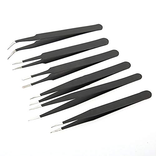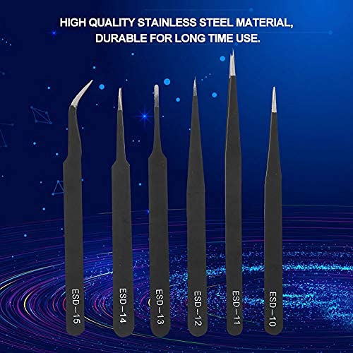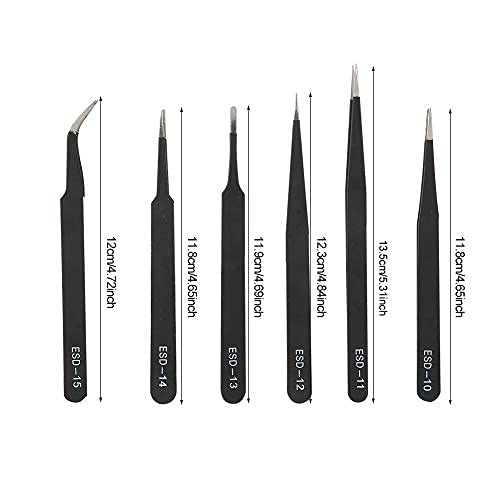 ♚✁ 【SICUREZZA, ANTISTATICA】 ✂ Le pinzette per gioielli hanno funzioni antistatiche, antiacidi e anticorrosive, che possono impedire all'elettricità statica di danneggiare i componenti elettronici. È molto adatto per computer o prodotti elettronici con interferenze anti-elettromagnetiche.