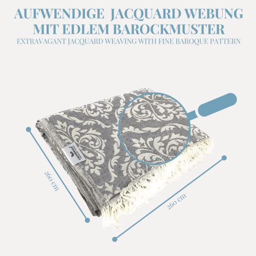 Carenesse Copriletto BAROCCO Ornamento grigio, Coperta Doubleface Nobile, 100% cotone, 260 x 260 cm, Copertura, Copridivano, Plaid, Coperta Giorno