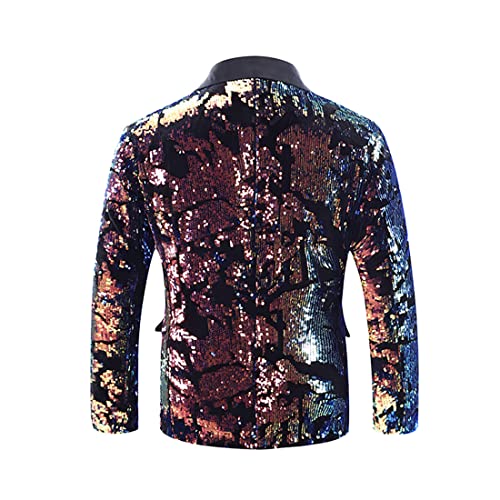 CARFFIV Uomini Moda Colorful Pattern Sequins Suit Jacket (XL, Blue)